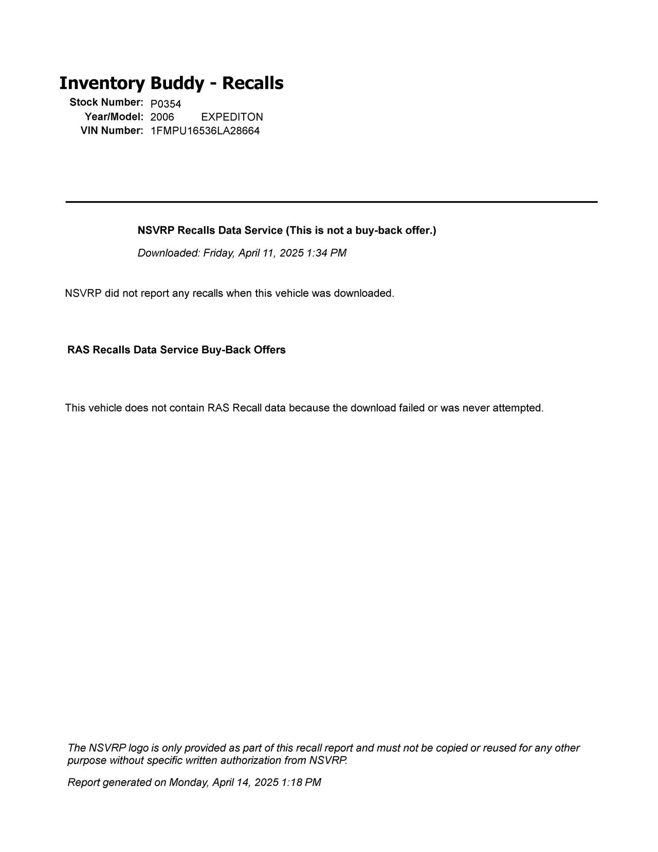 This Ford EXPEDITON was purchased from GRAA from ROCKFORD, IL on date 04/03/2025