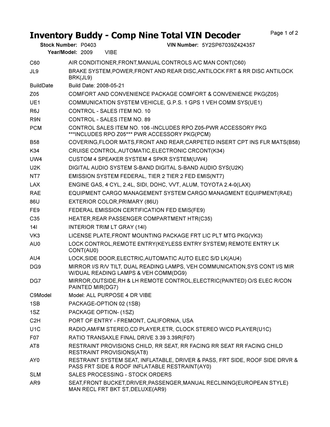 This Pontiac VIBE was purchased from LOUIS from DIXON, IL on date 04/14/2025