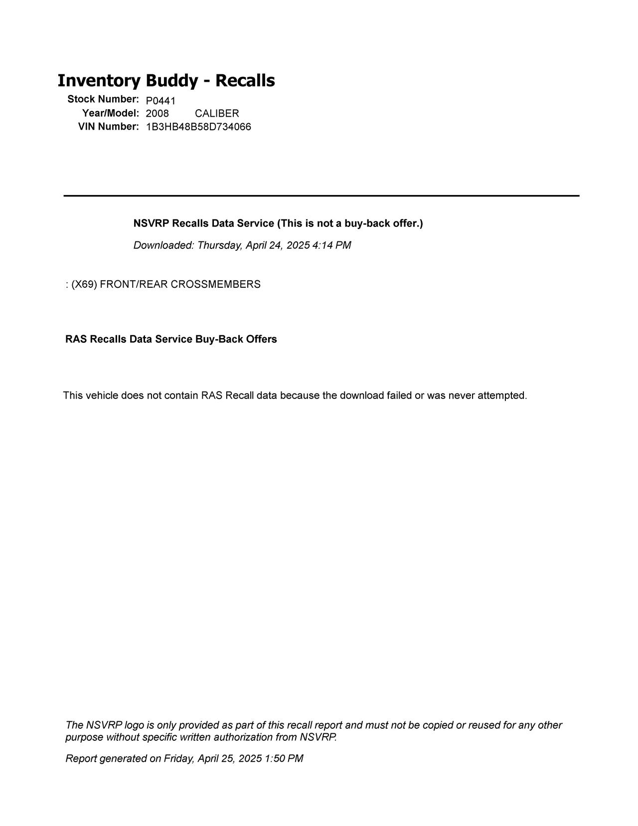 This Dodge CALIBER was purchased from GRAA from ROCKFORD, IL on date 04/18/2025