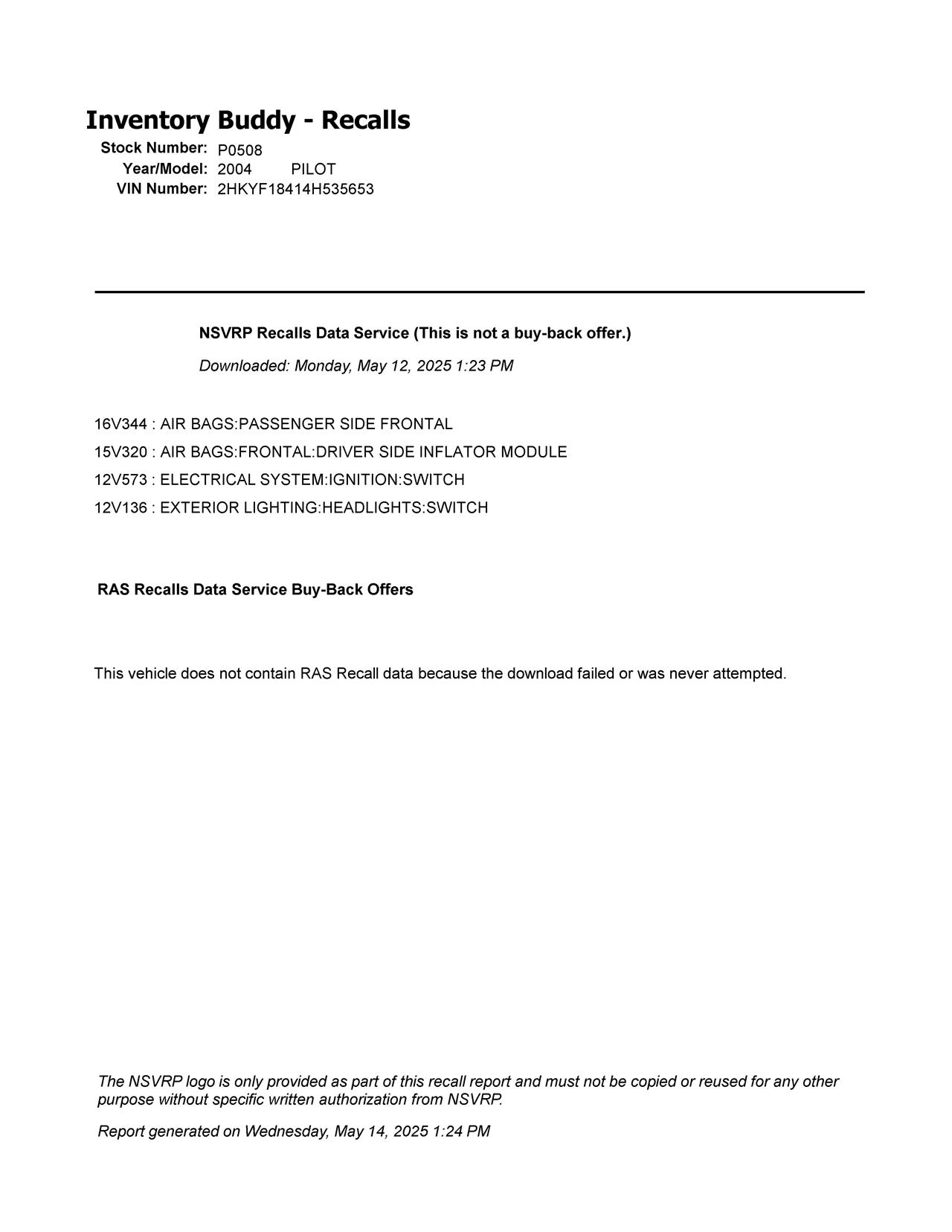 This Honda PILOT was purchased from ROBERT from DEKALB, IL on date 05/05/2025