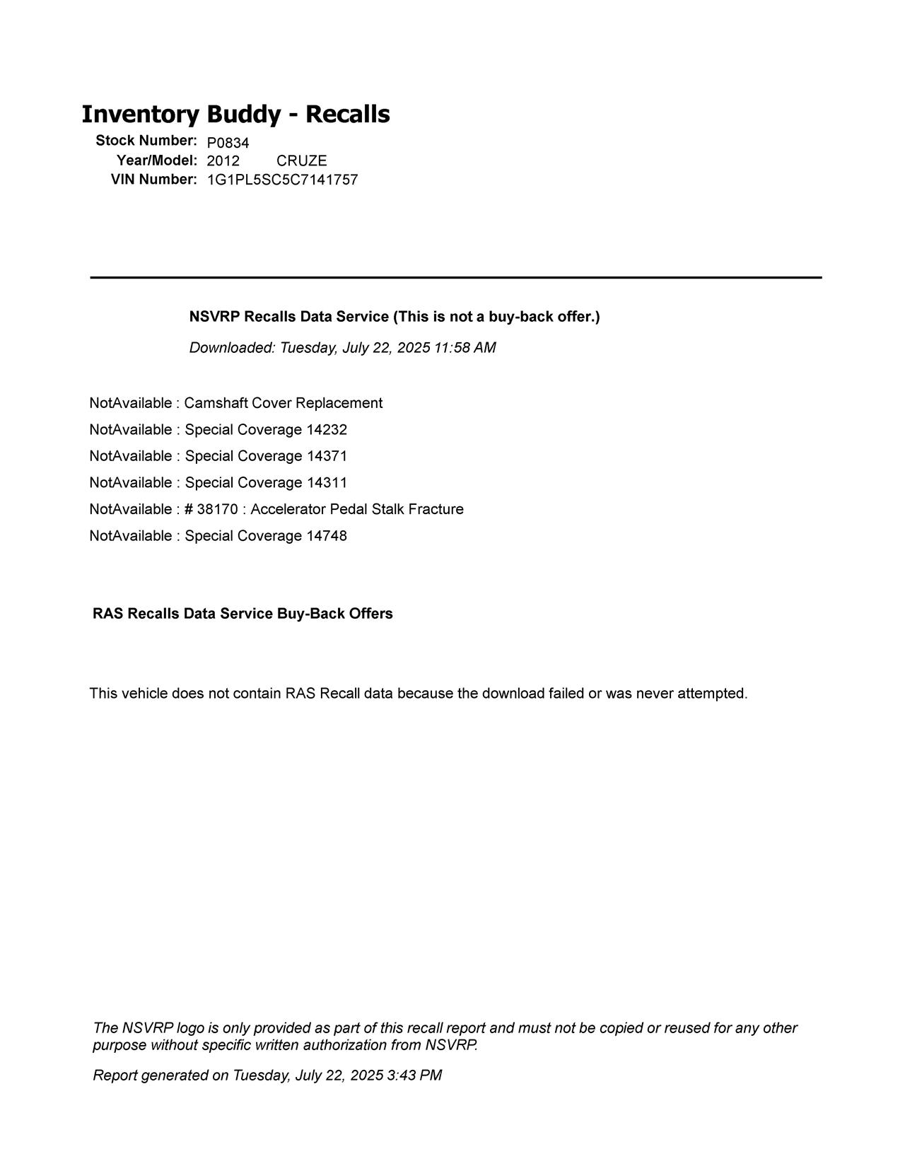 This Chevrolet CRUZE was purchased from GRAA from ROCKFORD, IL on date 07/14/2025