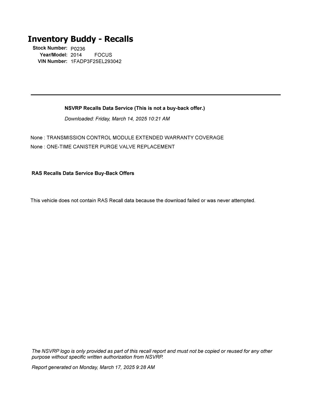 This Ford FOCUS was purchased from GRAA from ROCKFORD, IL on date 03/11/2025