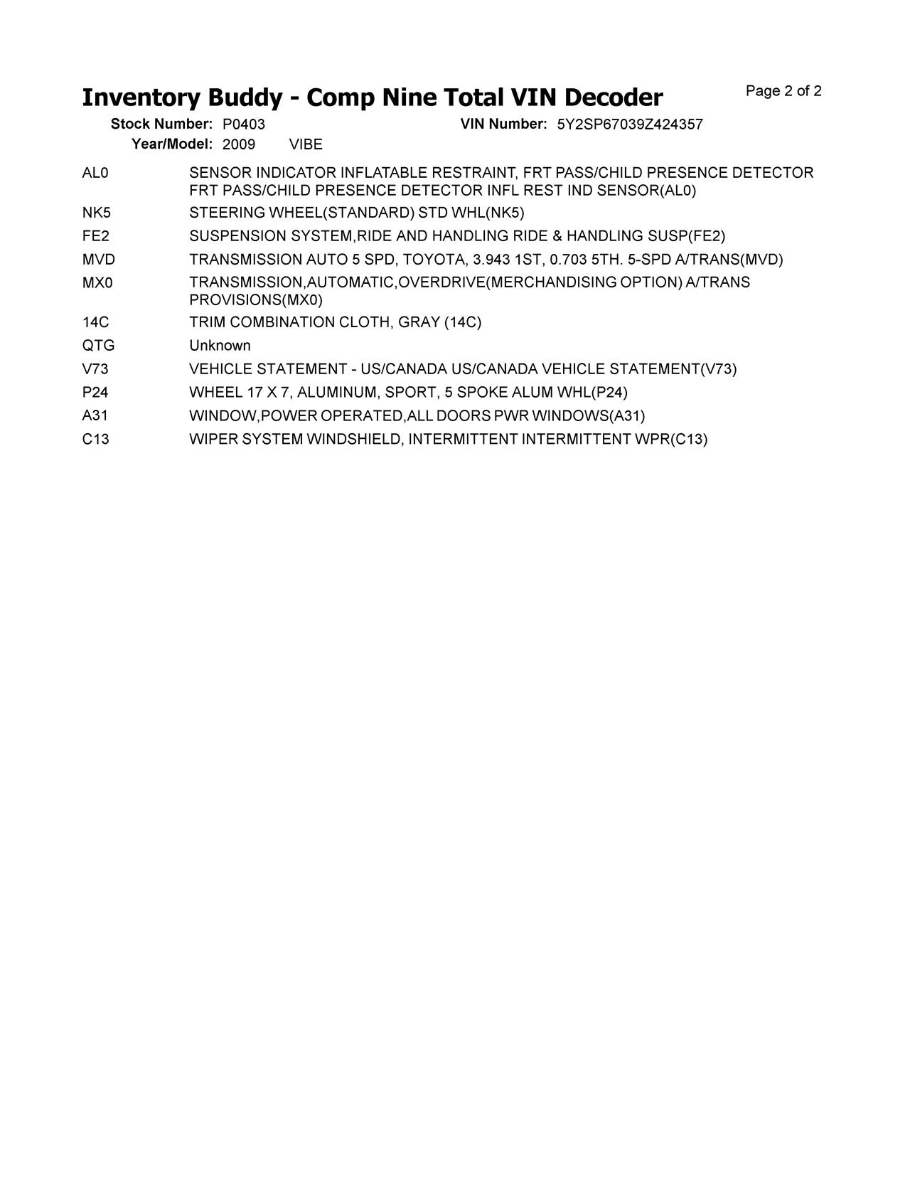 Stock Number P0403