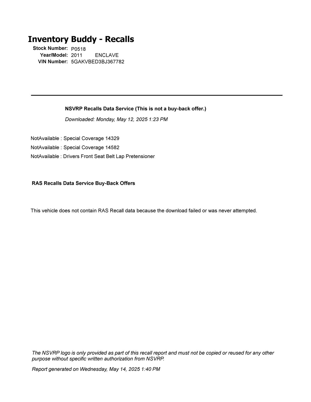 This Buick ENCLAVE was purchased from GRAA from ROCKFORD, IL on date 05/06/2025