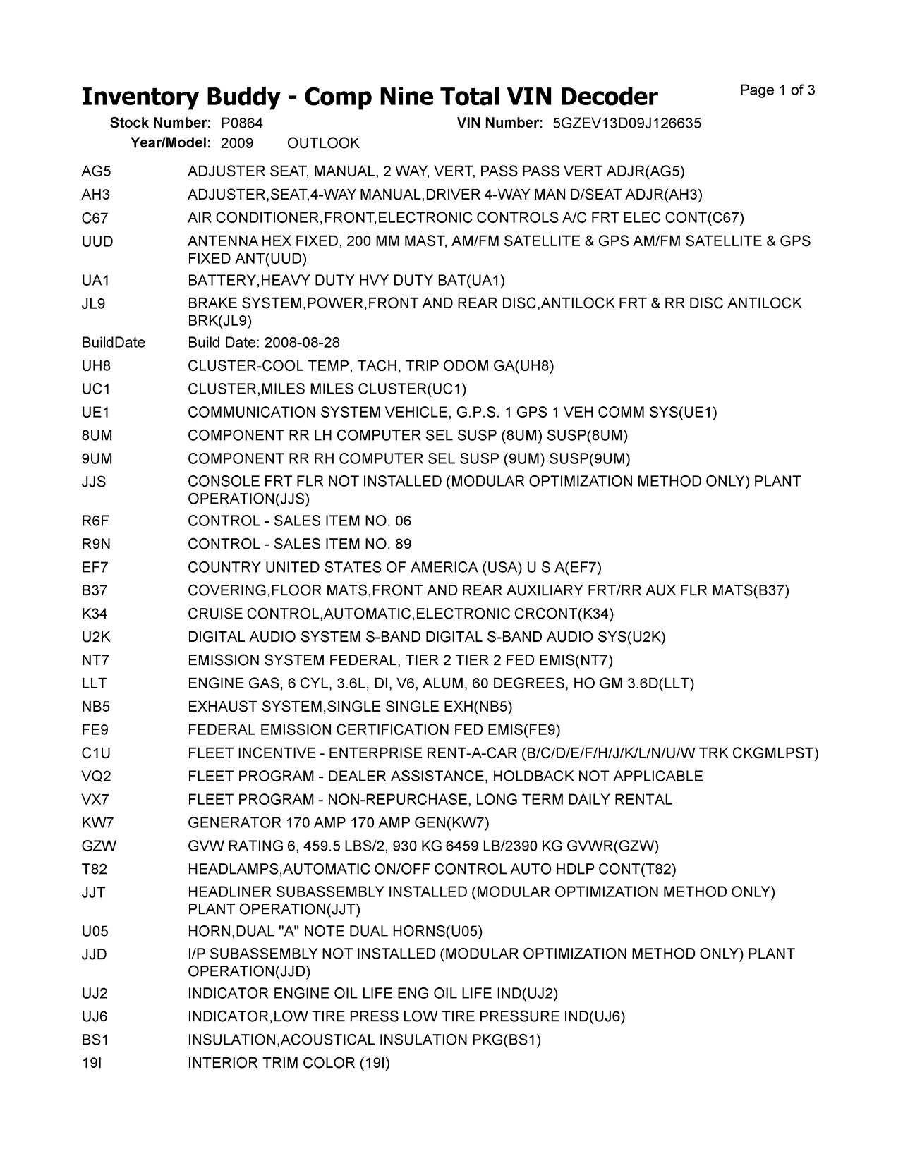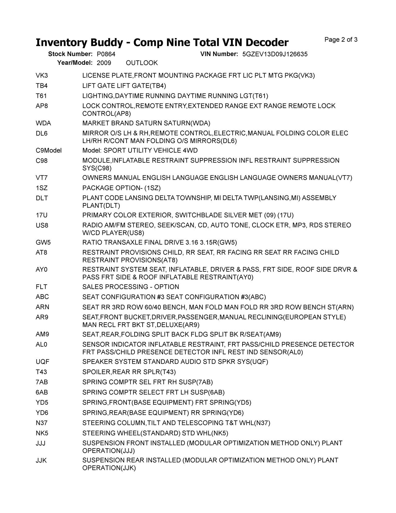This Saturn OUTLOOK was purchased from GRAA from ROCKFORD, IL on date 07/23/2025