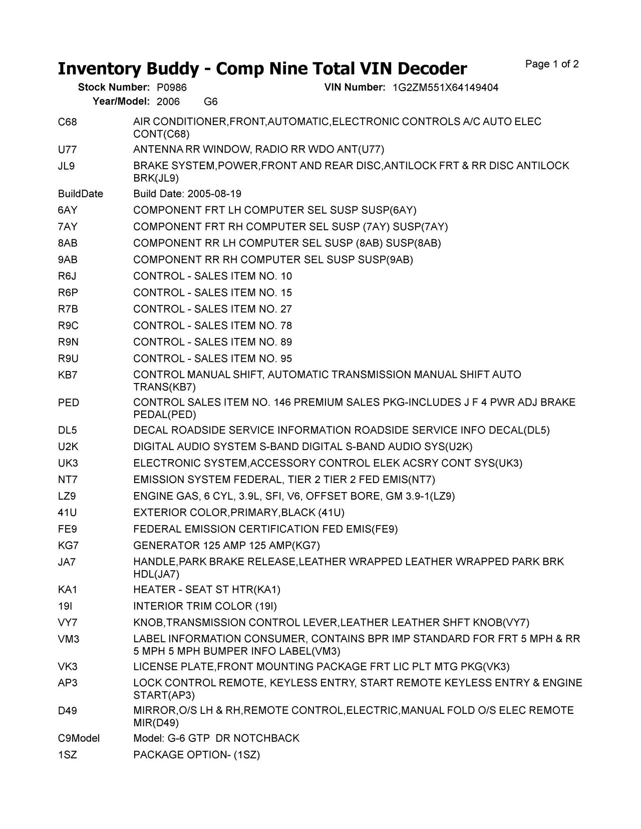 This Pontiac G6 was purchased from GARY from OTTAWA, IL on date 08/14/2025